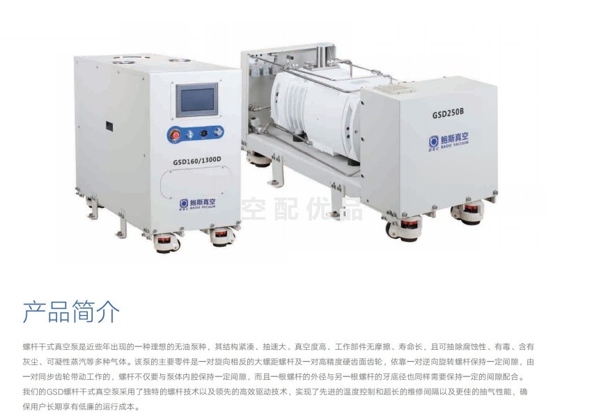我们的GSD螺杆干式真空泵采用了独特的螺杆技术以及领先的高效驱动技术,实现了先进的温度控制和超长的维修间隔以及更佳的抽气性能,确 保用户长期享有低廉的运行成本。
