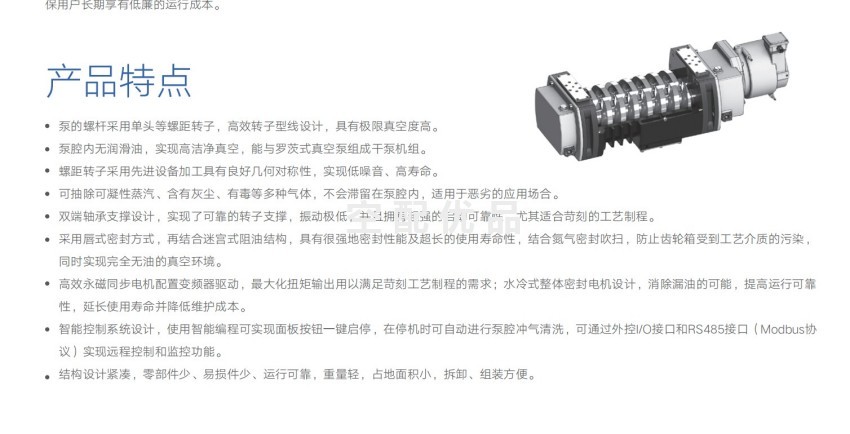 泵的螺杆采用单头等螺距转子,高效转子型线设计,具有极限真空度高。