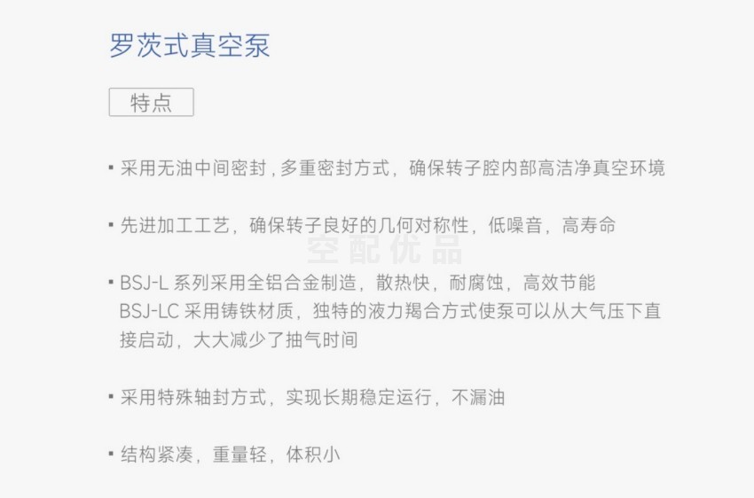 7、罗茨泵重新装配后应进行试运行,一般须空运转2小时并换油二次,因清洗时在罗茨泵中会留有一定量易挥发物,待运转正常后,再投入正常工作。