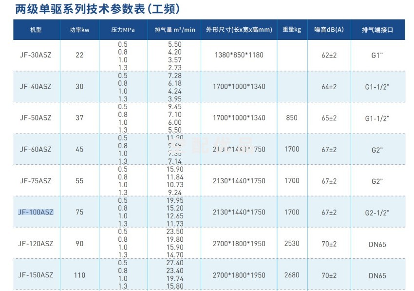 巨风JF-100ASZ空压机技术亮点