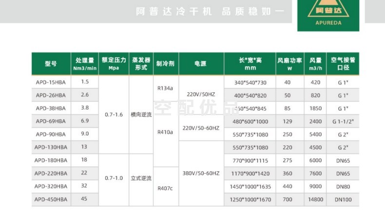 阿普达APD-90HBA板换冷干机介绍