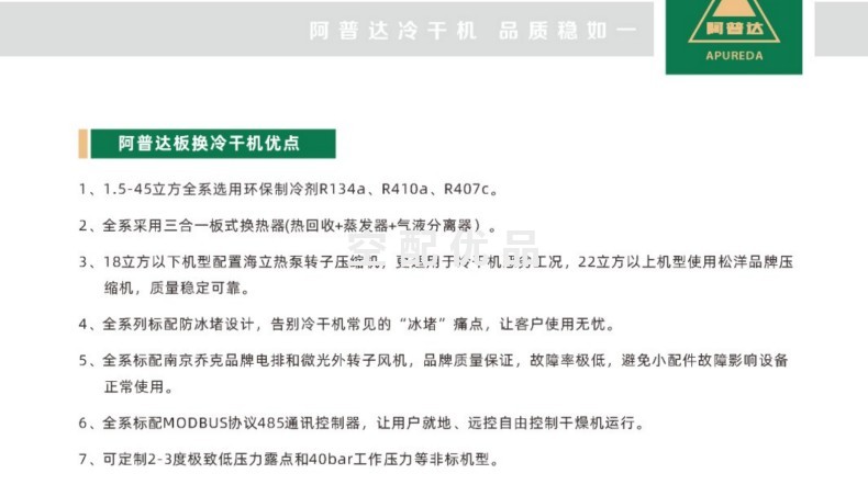 板式换热冷干机是一种利用板式换热器进行冷却和干燥压缩空气的设备,其工作原理是通过板式换热器将制冷剂与压缩空气进行高效热交换,使压缩空气的温度显著降低,其中的水分因此凝结成水滴,随后通过气水分离器将水滴与压缩空气彻底分离,从而实现压缩空气的除水干燥。