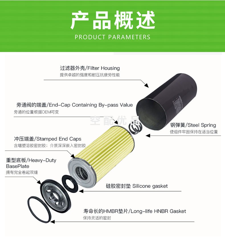 商品名称:空压机油滤芯(又名空压机油过滤器)